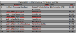 Diketahui, dari 10 peserta dengan nilai tertinggi tersebut, lima diantaranya ada Universitas Gajah Mada, kemudian empat di Universitas Indonesia, dan satu lagi di Universitas Airlangga.